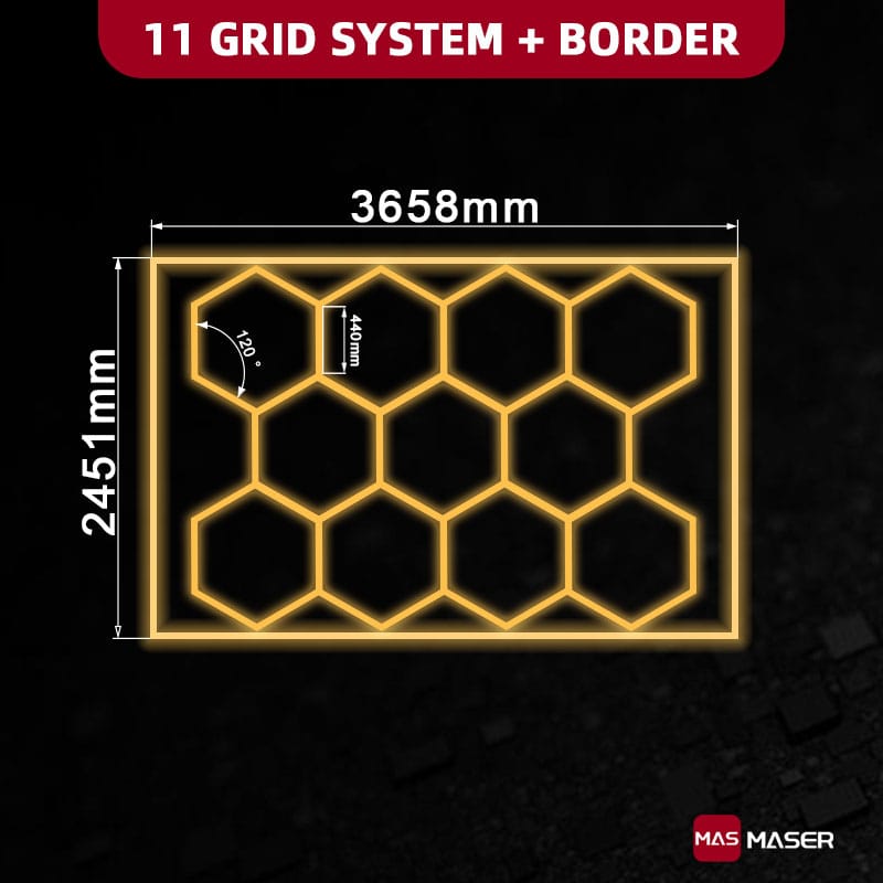 Our hexagonal lighting kit, which incorporates the 5CCT 11 hex lights with border, ideals for garage and workshop. Measuring 12×8 feet, it is equipped with 11 high brightness led honeycomb lights and comes with a rectangular border, forming an aesthetically pleasing and functional lighting setup. Hex light is easy to install, whether you prefer to install it by hanging or with screws, it can be seamlessly connect into any garage layout.
