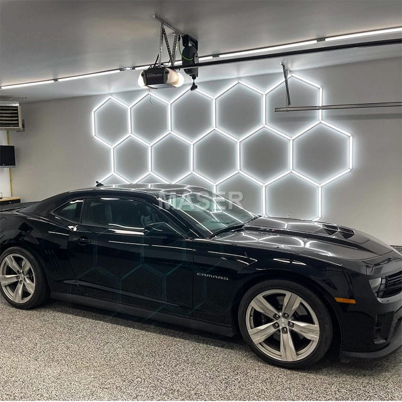 Hexagon garage LED lights are versatile and can be used for a variety of scenes, including automotive shops, auto body shops, auto detailing shops, auto repair shops, car wash shops, car showroom and more.