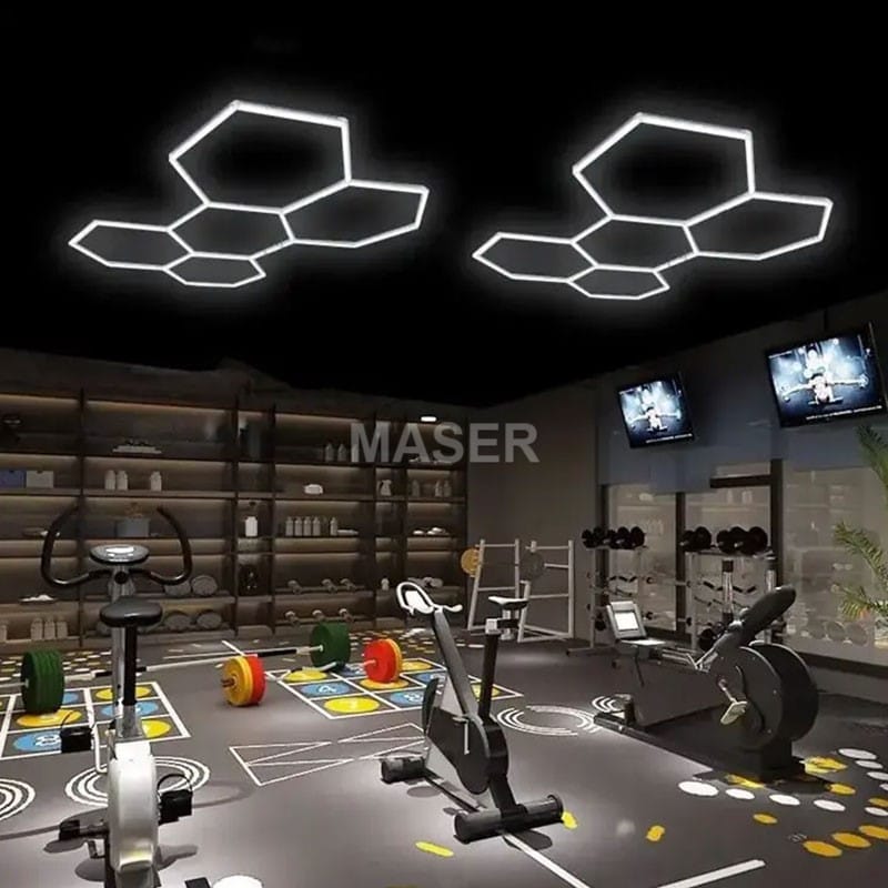 Gym hexagon lights are versatile and can be used for a variety of scenes, including gymnasium, fitness center, health club, body building gym, athletic club and more.