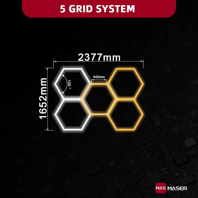 5CCT dimmable 5 hex lights system reshapes the spatial light and shadow with simple geometric lines, ensuring uniform light scattering. Whether in a gym, fitness center, or health club, it can become a piece of art on the ceiling.