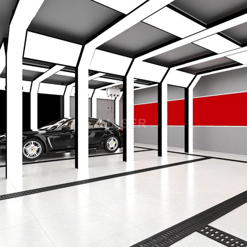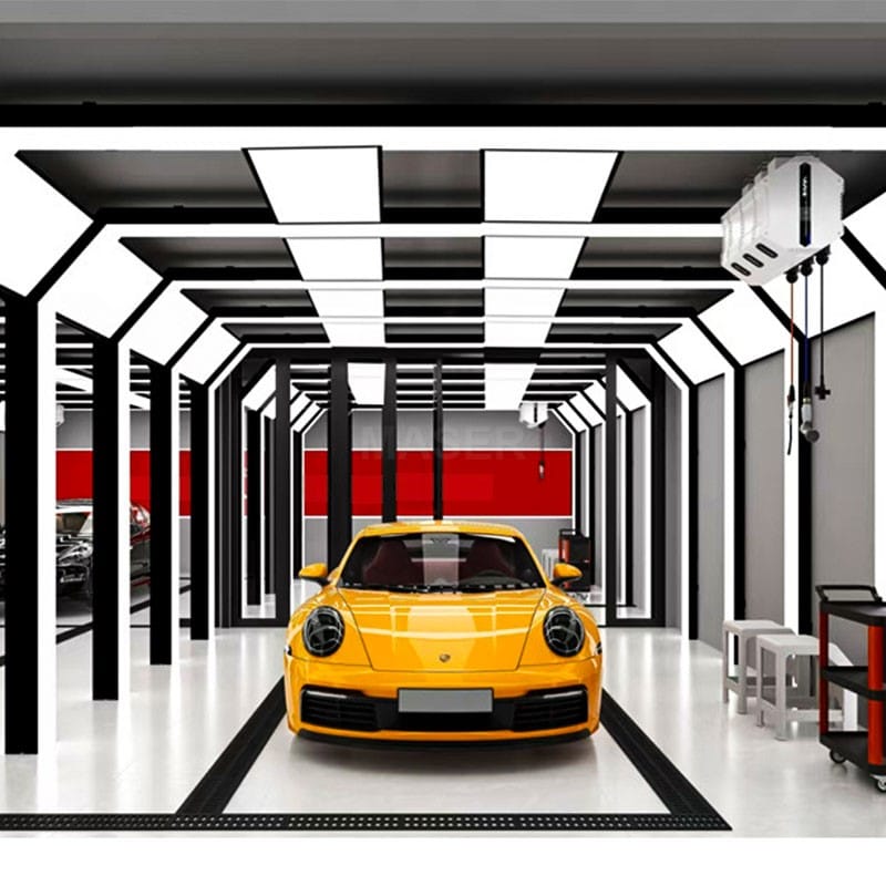 5 grid auto inspection tunnel with 4 LED panel lights and car wash tunnel lighting integrates a 360° high CRI light curtain and LED tunnel light with four side light panels, delivering shadowless illumination that mimics natural daylight for precise paint correction. Uniform light distribution eliminates color deviations, critical for automotive detailing and film application. The automotive paint inspection light utilizes an aluminum polycarbonate frame for durability, paired with modular components and plug and play compatibility for global voltage adaptability.
