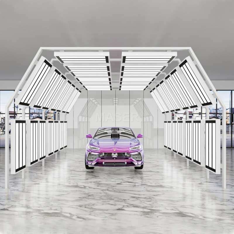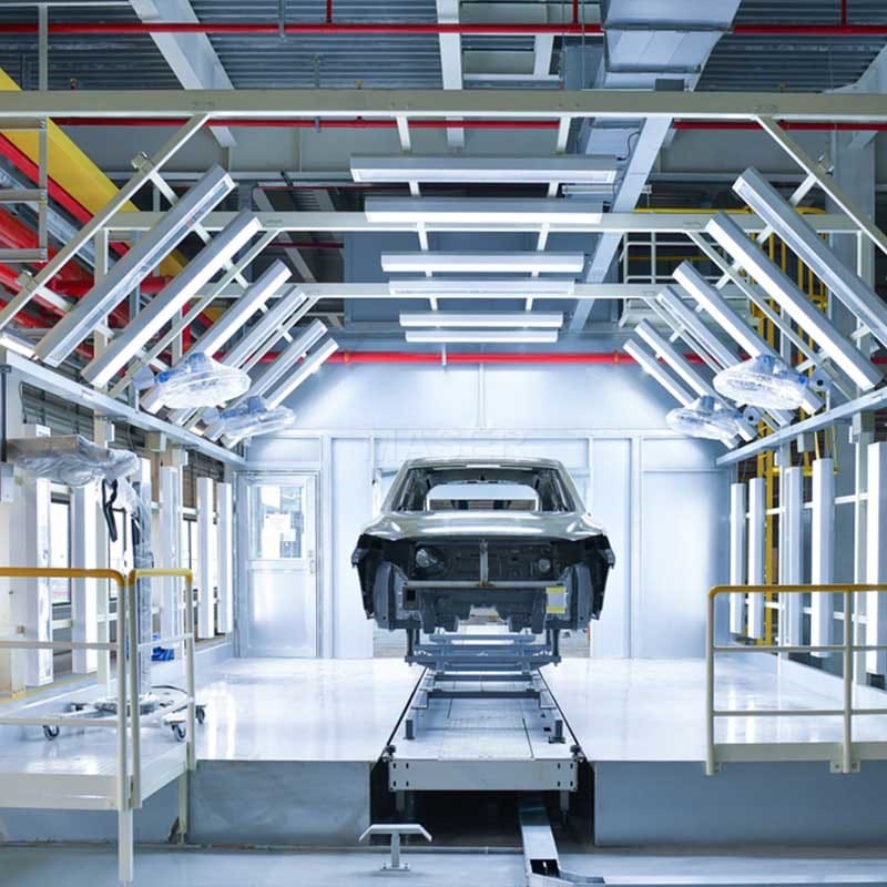 LED paint booth light is suitable for automotive manufacturing painting lines, 4S quick repair stations, and industrial robot spraying production lines. Its high-precision light field can meet the process requirements of electrostatic spraying of new energy vehicle battery packs, inspection of thermal barrier coatings of aero engines, and other processes. The arched tunnel design of this system is compatible with automatic spraying tracks, and it also extends to high-end customized painting fields such as yacht painting studios and motorcycle art modification centers.