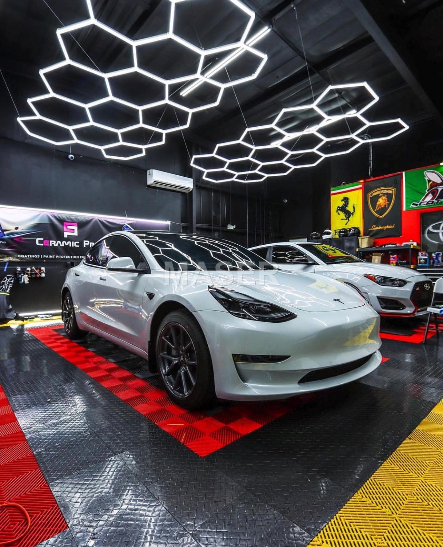 Hexagonal LED garage lights are versatile and can be used for a variety of scenes, including automotive shops, auto body shops, auto detailing shops, auto repair shops, car wash shops, car showroom and more.