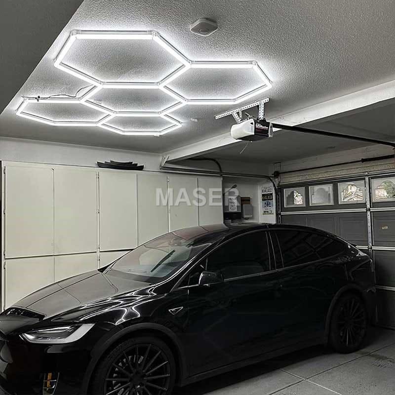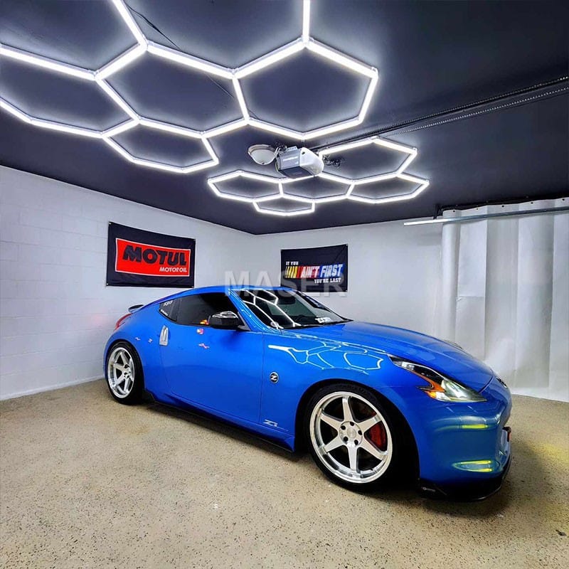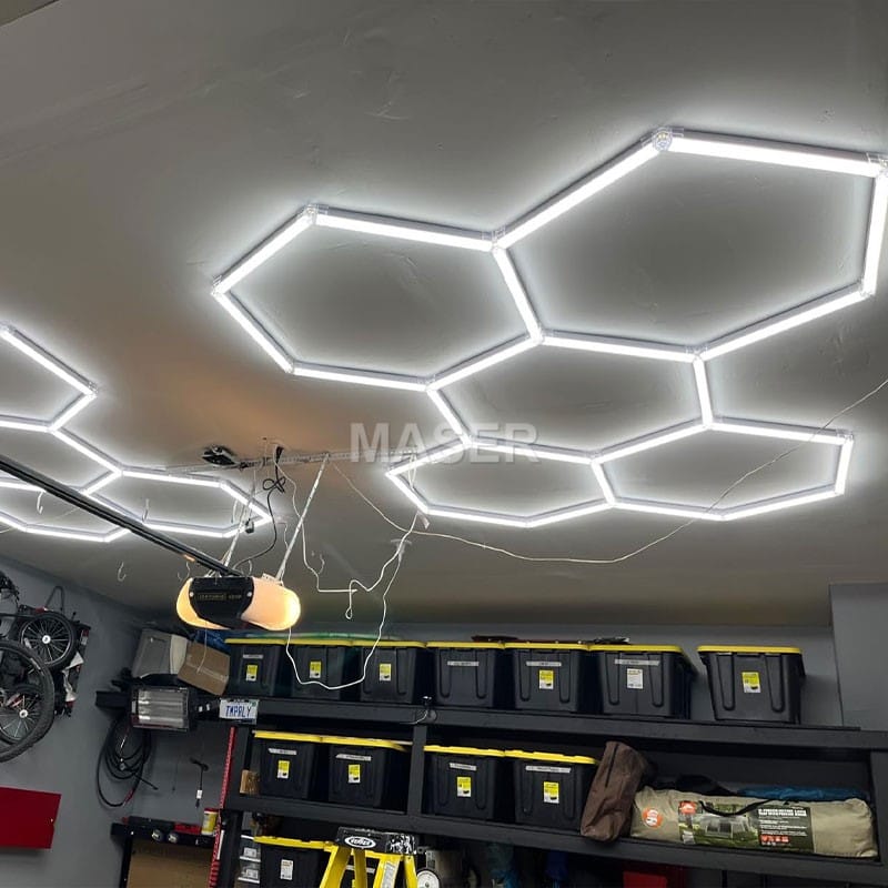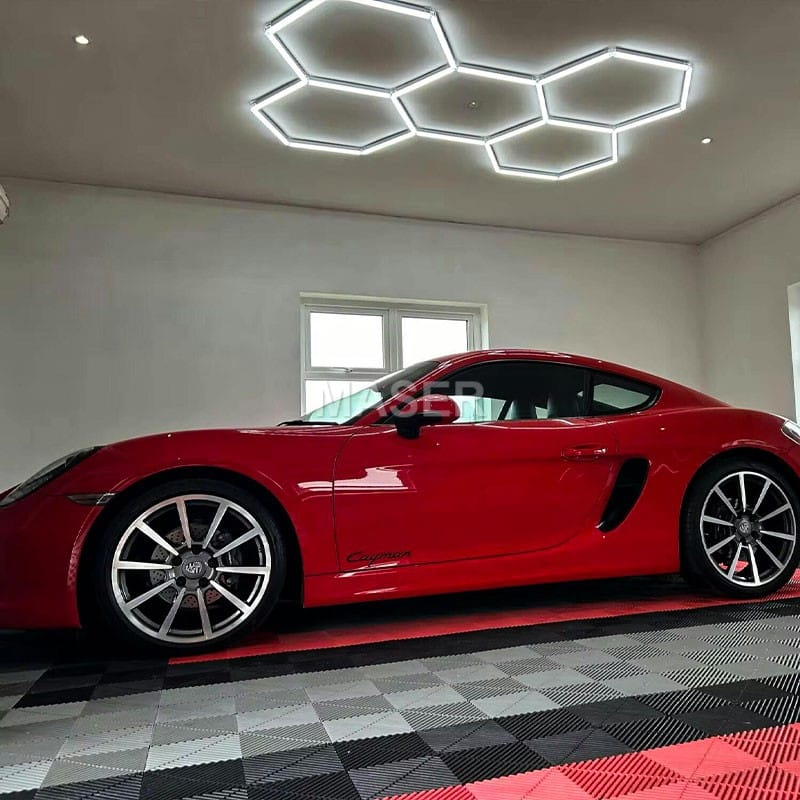 Dimmable hexagon lights are versatile and can be used for a variety of scenes, including automotive shops, auto body shops, auto detailing shops, auto repair shops, car wash shops, workshops, car showrooms and more.