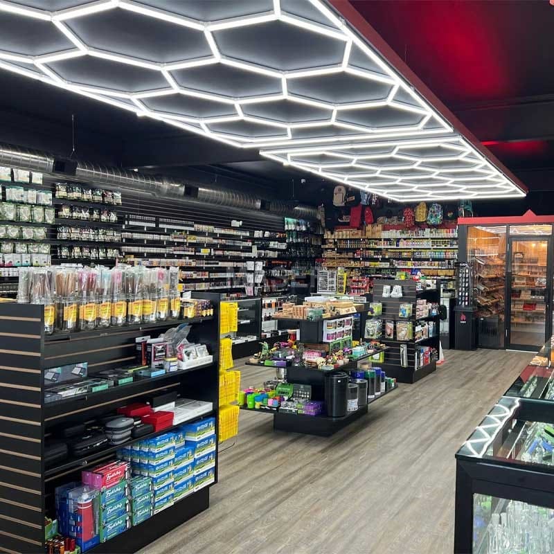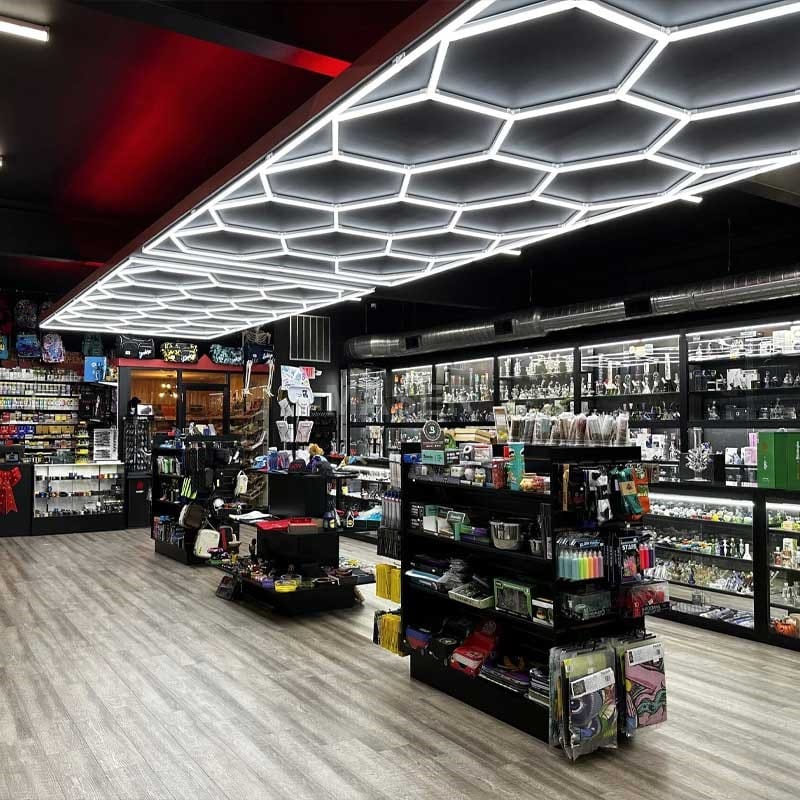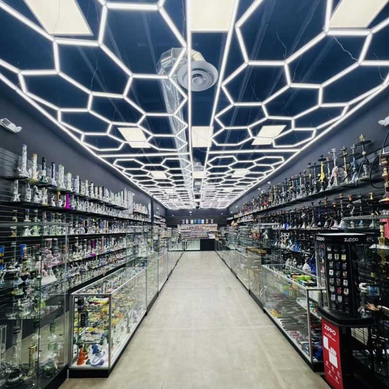 Hookah shop hexagon lighting and vape shop lighting present a hexagonal ambient lighting solution. Specially designed for hookah lounges and e-cigarette shops, it reshapes smoke aesthetics with geometric light and shadow, turning each wisp of smoke into art. hexagonal LED lights crafts a visually impactful environment for all ages and reconstructs the consumption scene. Here, it’s not just a smoky relaxation spot, but a symbiosis of aesthetics and business value.