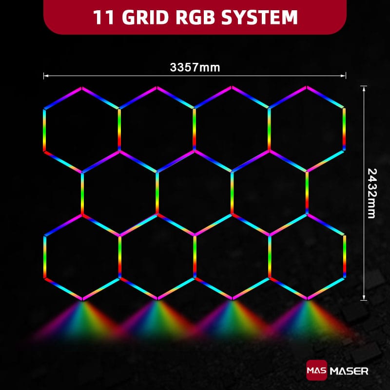 Hexagon RGB lights are versatile and can be used for a variety of scenes, including automotive shops, auto body shops, auto detailing shops, auto repair shops, car wash shops, workshops, garages, showrooms, gyms, gaming, barber shop, supermarket and more.