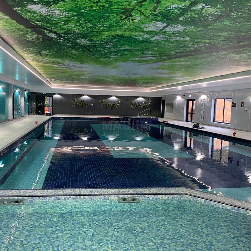 PVC film stretch ceiling light is versatile and can be used for a variety of scenes, including swimming pool, swimming bath, plunge pool and more.