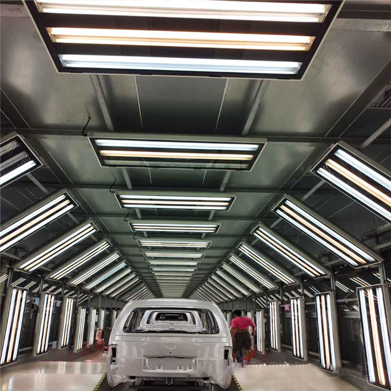Our spray booth lights strictly follow ergonomic standards, utilizing deep anti-glare optics to eliminate flicker and harsh glare, significantly reducing visual fatigue and eye strain for technicians during long, high-intensity shifts. The soft, uniform illumination creates a comfortable visual environment, enabling operators to detect paint defects more accurately and minimize rework caused by visual errors. Furthermore, this LED system boasts a high efficacy of 110 lm/W, achieving superior illuminance with fewer fixtures. With 60-70% energy savings, maintenance-free operation, and low heat emission, it drastically cuts downtime and labor costs while reducing air conditioning loads, delivering comprehensive cost reduction and efficiency gains through advanced paint booth lighting design.